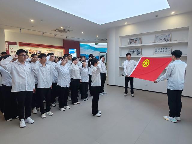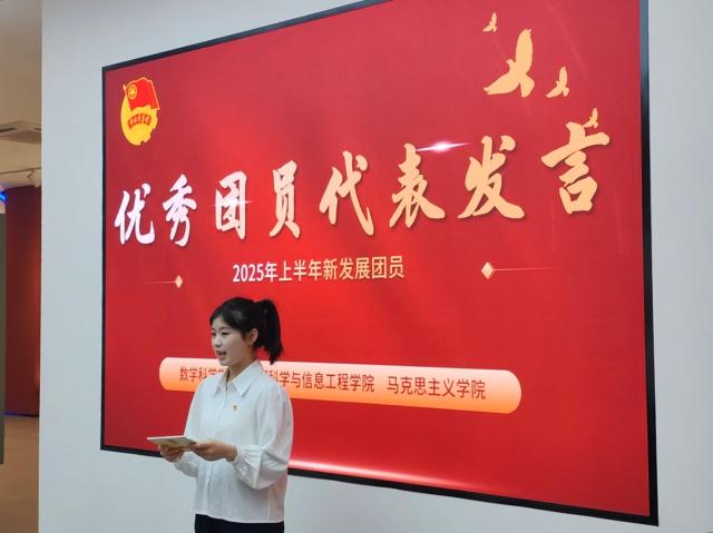 仪式在激昂的国歌声中拉开帷幕。全体与会人员整齐肃立,向国旗致以崇高敬意,随后,主持人宣读新发展团员名单,各学院团委书记为新发展团员佩戴团徽、颁发团员证。全体新发展团员面向团旗庄严宣誓。优秀团员代表孙明娟勉励新发展团员坚定理想信念、永葆求知热情,争做信念如磐、勤学善思、实干笃行的新时代奋斗者。新发展团员代表冯慧敏承诺,今后将以共青团员标准严格律己,将个人理想融入时代发展大局,用实际行动诠释入团誓言,彰显共青团员的责任与担当。