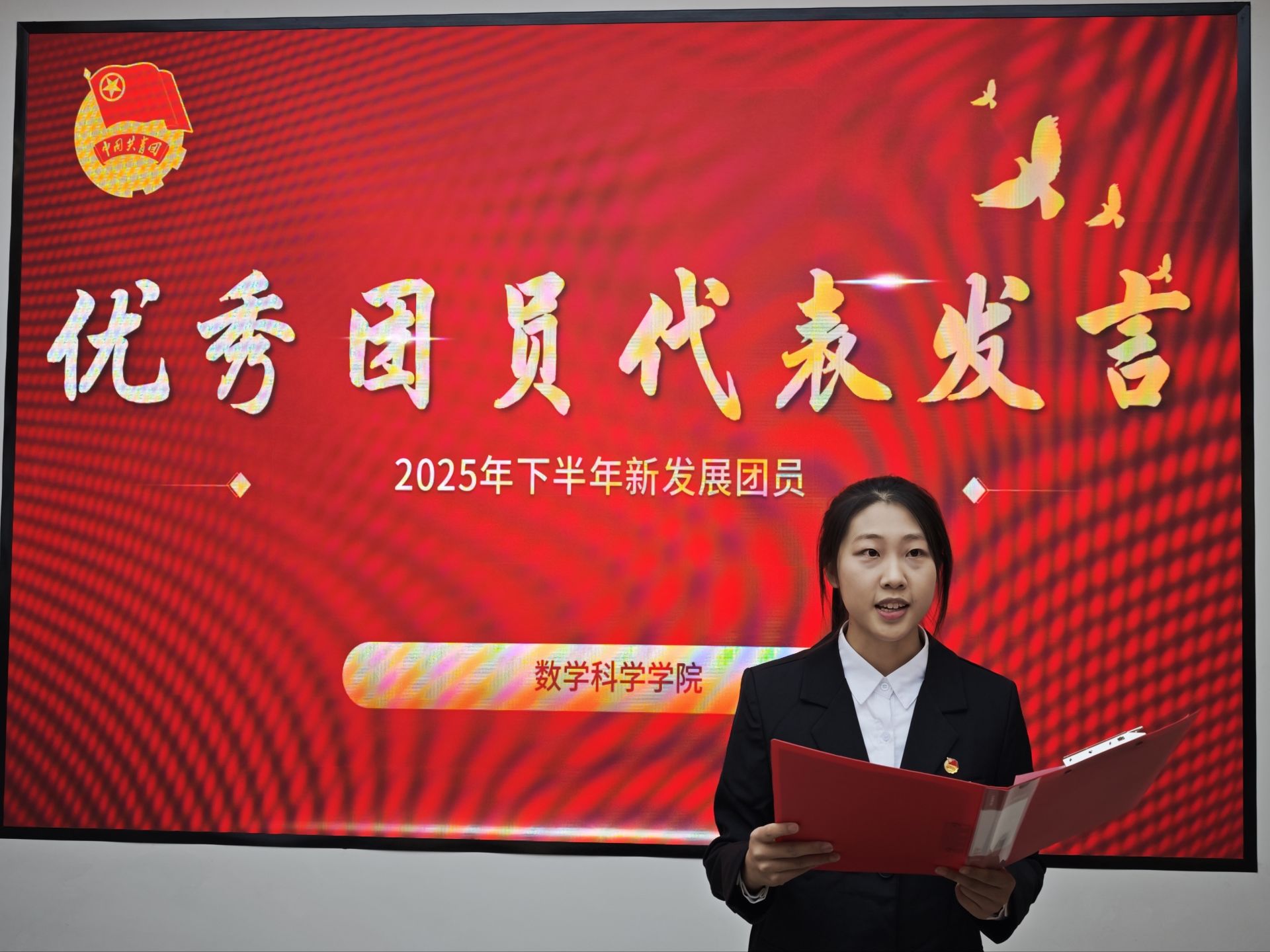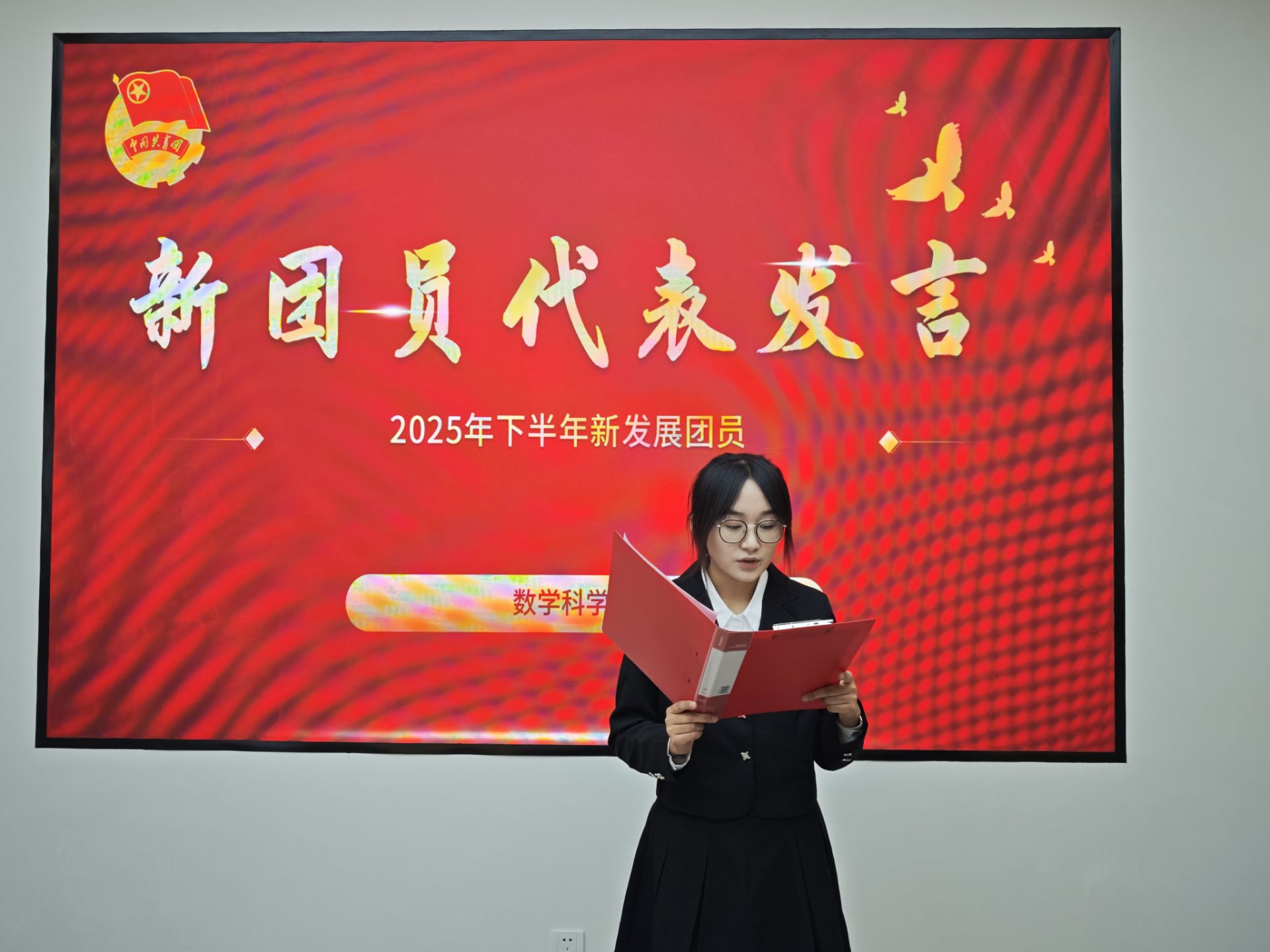 新团员代表翟恒瑶代表全体新团员承诺,将会严格遵守团的章程,履行团员义务,勤学善思笃行、锤炼过硬本领,以青春之担当践行时代使命,为理想不懈奋斗。随后,优秀团员代表孙若琪分享了三点感悟,一是要筑牢信仰之基,争做有志青年,在思想淬炼中坚定理想航向;二是要锤炼实干本领,争做有为青年,让青春在服务人民、奉献社会的实践中熠熠生辉;三是要恪守组织规范,争做有责青年,用点滴行动为团组织的蓬勃发展添砖加瓦。