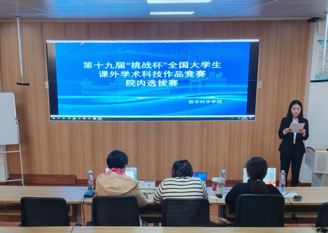 11月21日,数学科学学院于11号教学楼A307教室举办第十九届“挑战杯”全国大学生课外学术科技作品竞赛院赛,特邀外国语学院副教授、高级辅导员张晓冬老师,海角 创新创业学院高级辅导员王鑫老师担任评委,学院辅导员张琦老师出席此活动。