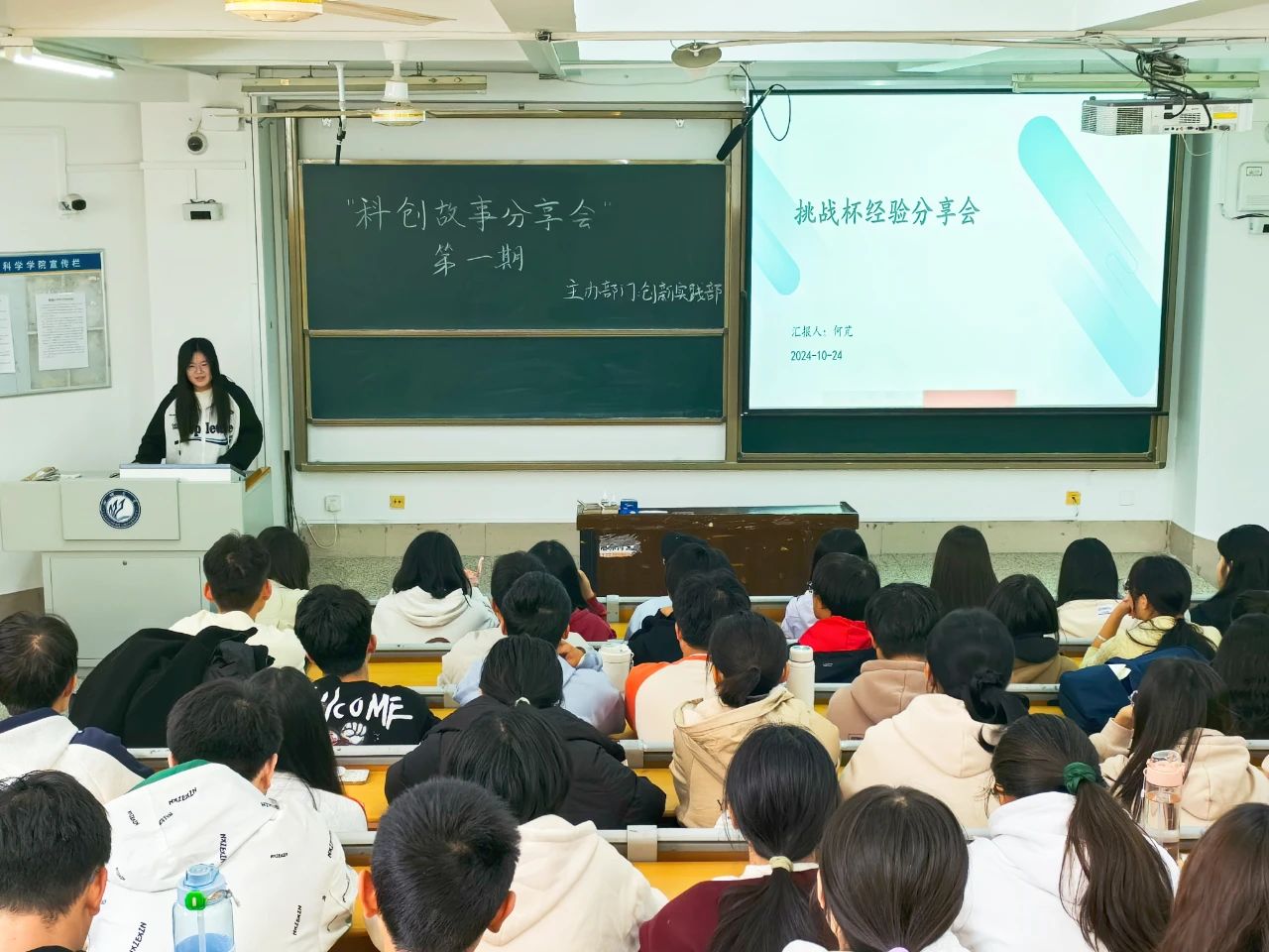为加强学生对科创赛事的认识,提高创新精神和创业能力,10月24日,数学科学学院于11号教学楼A204开展“科创故事分享会•第一期”活动,商学院智视引领者-禁视系统(R&B)助力中小型机械企业数字化转型项目成员夏宁以及数学科学学院智能化的多档传动与控制系统项目负责人何芃主讲,2023级、2024级部分学生参加。