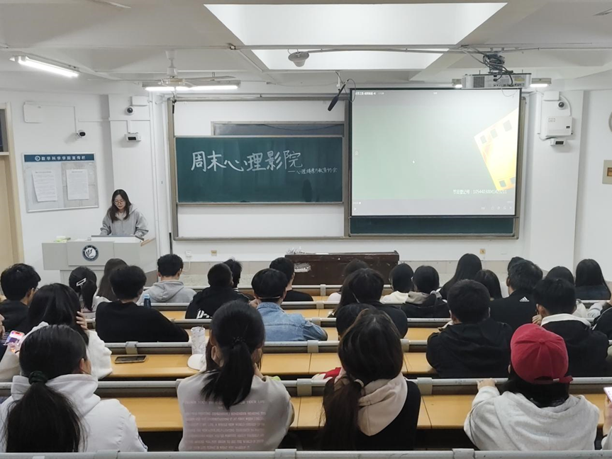 为舒缓紧张的学习节奏给同学们带来的生活压力,11月2日,数学科学学院于11号教学楼A204举办周末心理影院活动,本次活动由王梦娴主持,2023级、2024级部分学生参加。