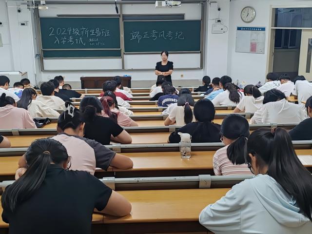 本次新生入学考试通过在线考试的方式进行,全面考察学生手册中教学管理、奖励资助、综合测评、公寓管理和违纪处分等内容,涉及同学们在校内日常学习生活中的各个方面,全面、系统、深入地帮助2024级新生了解学校的各项规章制度和行为规范。为严肃考场纪律,辅导员张琦老师对考场环境、学生答题等情况进行巡视监督,督促学生遵守纪律、认真答题。考试期间,各考场秩序井然,各监考人员认真负责,同学们严守考试纪律,从容应考、规范作答,展现出良好的考风考纪。
