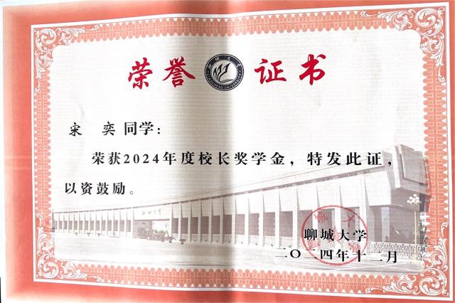 “心存希冀,追光而遇;目有繁星,沐光而行。”自入学以来,宋奕同学始终以新时代青年的标准严格要求自己,主动向党组织靠拢,第一时间递交入党申请书,现已成为一名中共预备党员。她坚持用党的创新理论武装头脑,以坚定的政治立场恪守党纪,将崇高理想转化为实际行动。作为聊城市学生联合会第一次代表大会学生代表,她既以“有理想、敢担当”的品格勇立潮头,又以“能吃苦、肯奋斗”的行动诠释担当精神,在思想淬炼中铸就忠诚本色,在社会实践中砥砺初心使命。