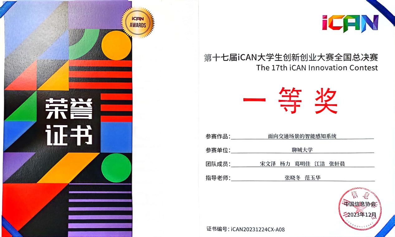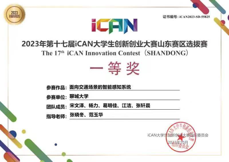 2023.10 第十七届iCAN大学生创新创业大赛山东赛区选拔赛一等奖