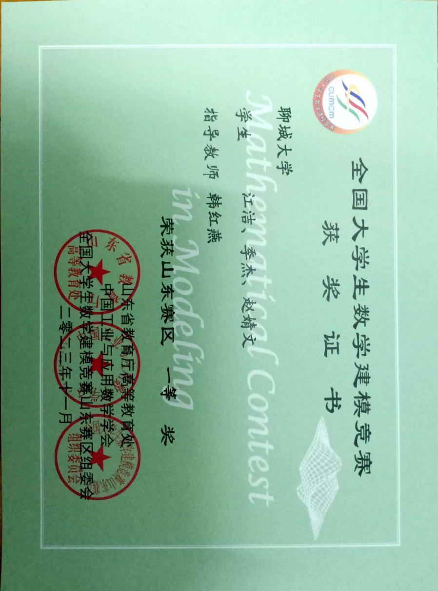 2023.11 全国大学生数学建模竞赛山东赛区一等奖