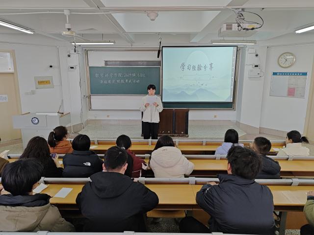 为激发同学的学习热情,加强班级内部的沟通与交流,3月16日,数学科学学院2024级6班于11号教学楼A207教室开展“学途拾贝,经验漫谈”活动,此次活动由赵晨旭主持,2024级6班部分学生参加。