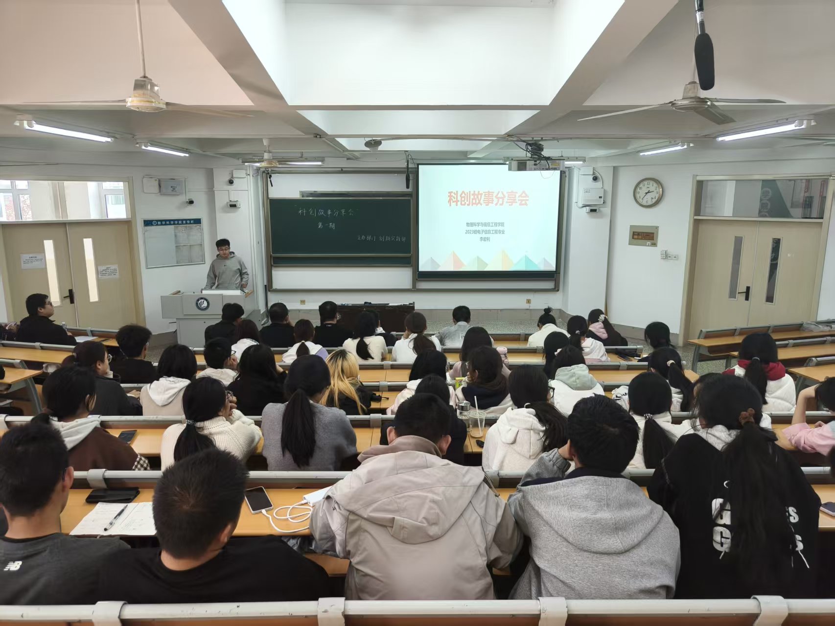 为提高学生对科创赛事的了解,激发学生科技创新的热情,10月30日,数学科学学院于11号教学楼A204教室开展“科创故事分享会·第一期”活动,海角 创新创业之星物理科学与信息工程学院李宏利、传媒技术学院房嘉辉、机械与汽车工程学院曹禄宇和张棋炜主讲,2025级部分学生参加。