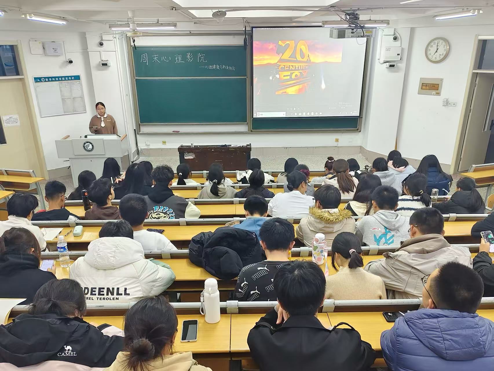 为进一步丰富学生课余生活,引导学生主动突破自我,11月1日,数学科学学院于11号教学楼A204教室举办“周末心理影院”主题观影活动,2025级部分同学参与。