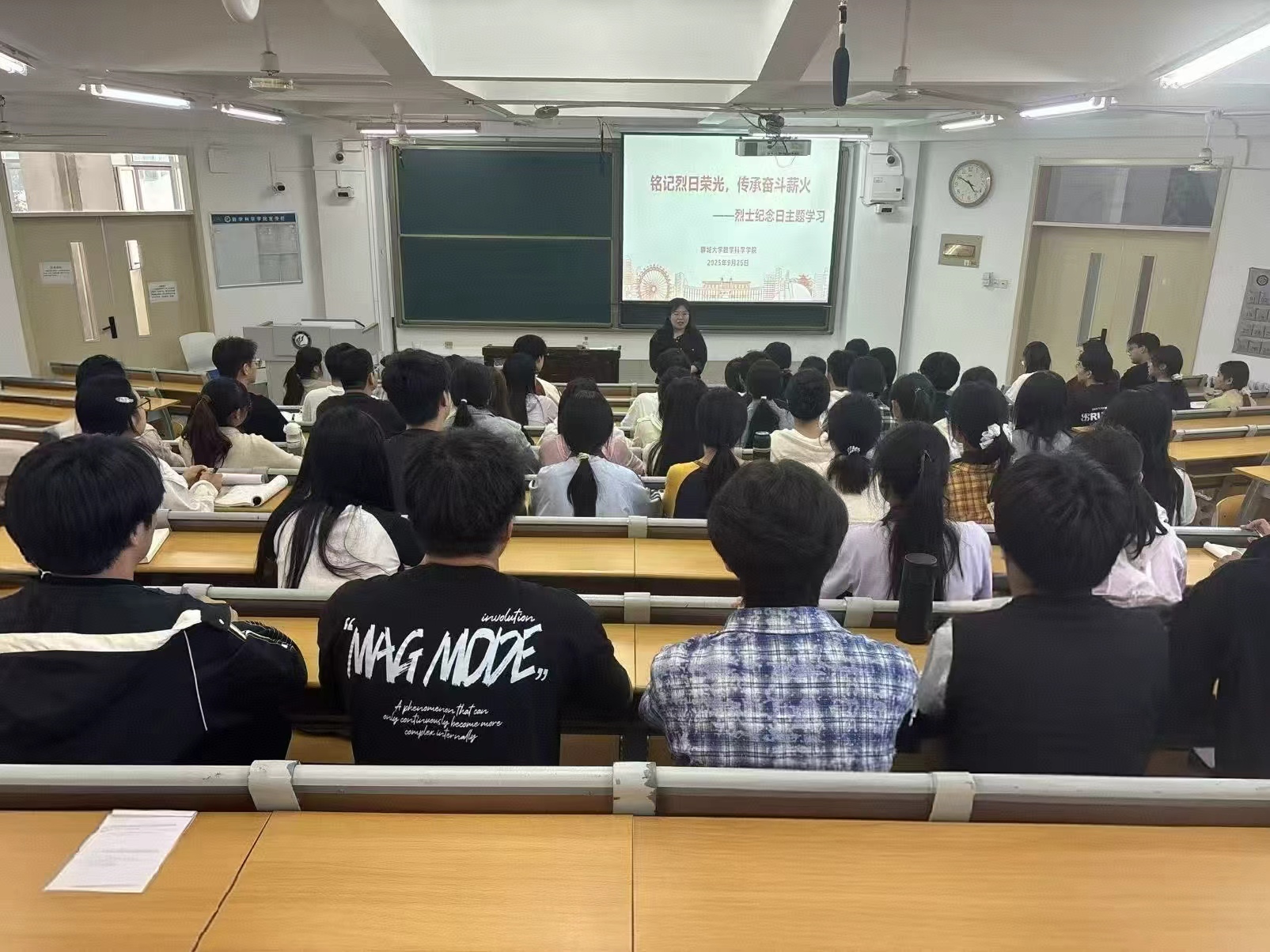 为引导学生以烈士为榜样践行奋斗精神,激发学生爱国主义热情,9月25日,数学科学学院于11号教学楼A204教室开展“铭记烈日荣光,传承奋斗薪火”烈士纪念日主题学习活动,本次活动由团委书记岳琳琳主讲,2023级、2024级部分学生干部参加。
