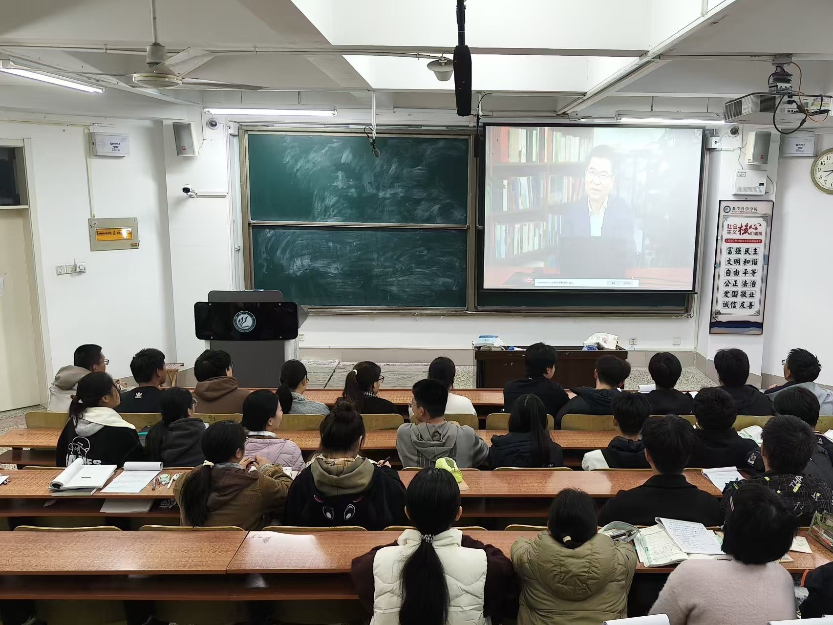 为贯彻落实立德树人根本任务,增强学生思想政治素养,10月28日,数学科学学院于11号教学楼A107、A204、A207、C204教室组织观看习近平文化思想大讲堂活动,2023级、2024级部分学生参加,2025级全体学生参加。