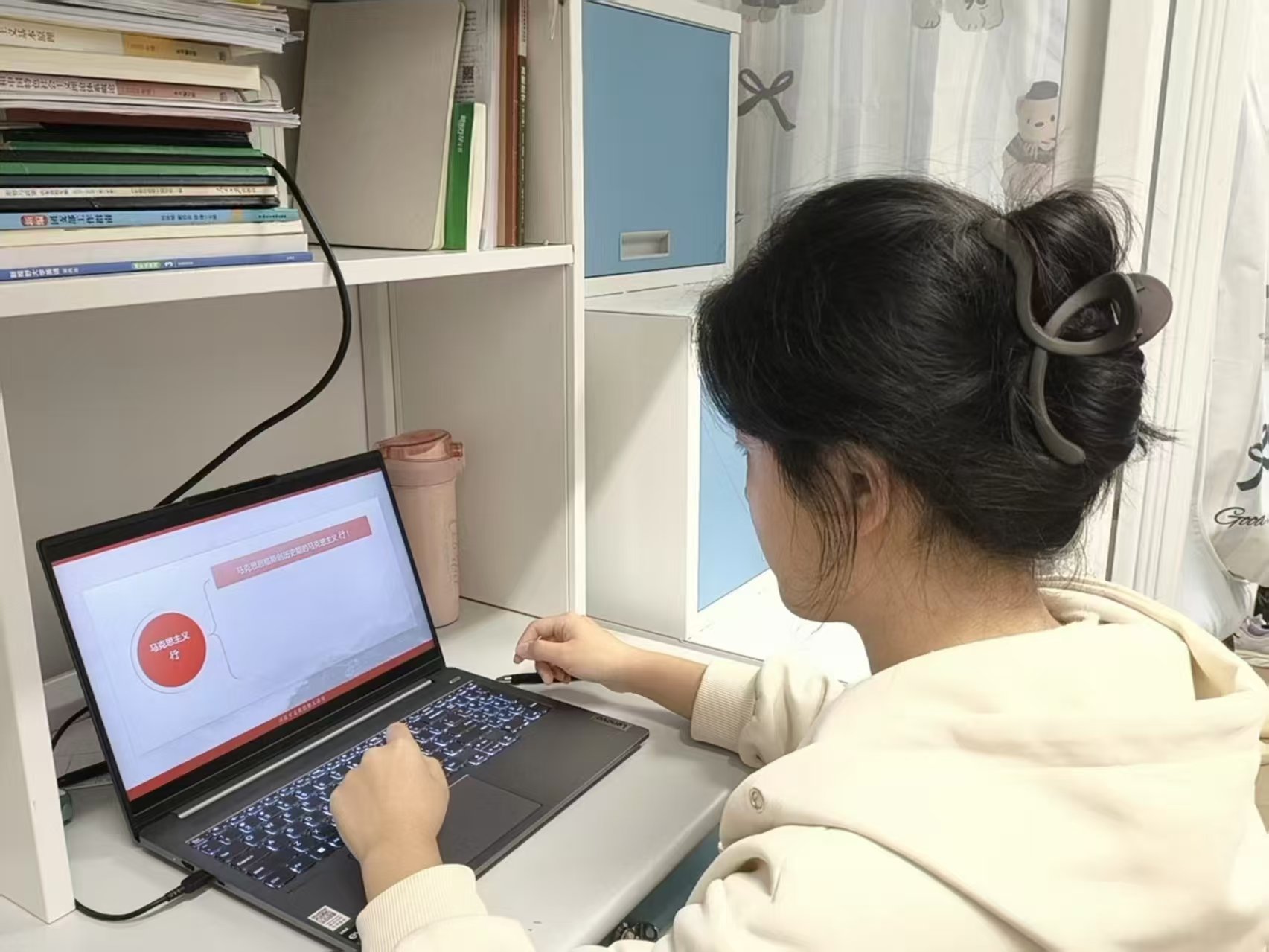 习近平文化思想大讲堂由教育部高等教育司统筹组织,全国高校教师网络培训中心负责具体执行工作,以深入学习贯彻习近平文化思想为主线。本次讲堂以建设具有强大凝聚力和引领力的社会主义意识形态为主题,围绕文化领导权、马克思主义以及建设具有中国特色的哲学社会科学三个关键词展开。专家通过剖析习近平总书记在党的十九届四中全会上的讲话内容,让同学们对如何落实习近平文化思想有了更深一步的了解。专家强调,我们必须坚定文化自信,从文化传承中汲取思想智慧。观看过程中,同学们专注聆听,认真记录要点。
