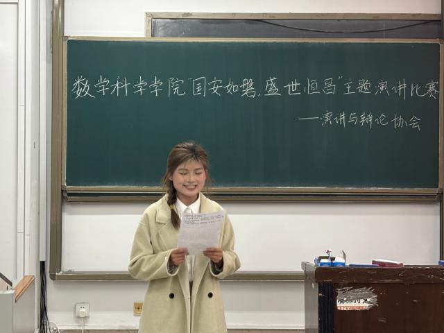 2月28日,数学科学学院在11号教学楼A204教室举办了一场以“国安如磐,盛世恒昌”为主题的国家安全演讲比赛,旨在深化学生的国家安全意识,培育浓厚的爱国主义情感。此次活动由辅导员张琦担任评委,2023级和2024级部分同学参加。