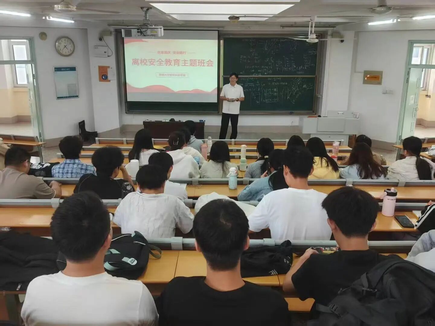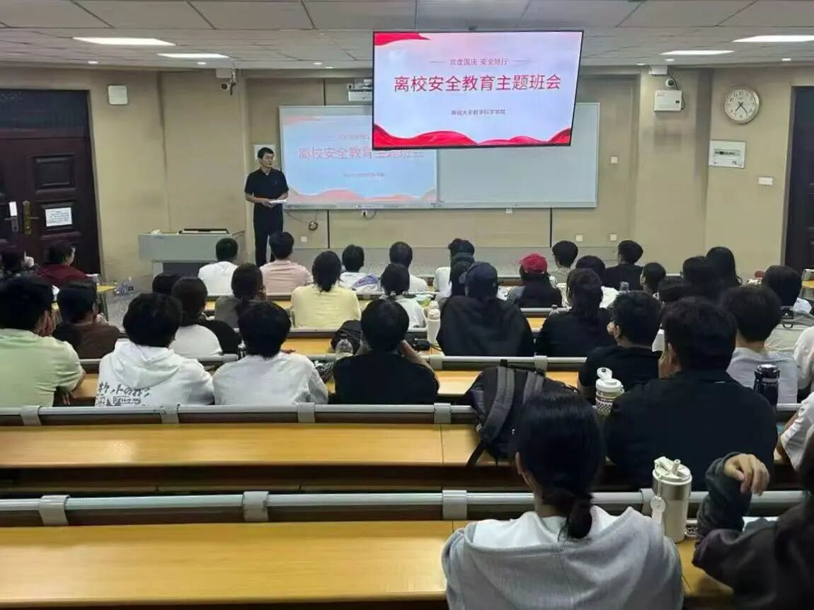为提高学生安全防范意识,保障学生离校期间人身安全和财产安全,9月30日,数学科学学院于11号教学楼A107、A207、A304教室开展离校安全教育主题班会,本次活动由各年级辅导员主讲。