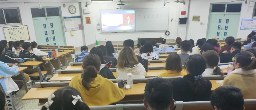 学习百年党史,践行初心使命。在学生会主席宣布了观看纪律后,由各负责人组织各教室同学通过大屏幕集体观看党史思政大课。此次“同上四史思政大课”第一堂课由北京师范大学马克思主义学院教授赵朝峰、武汉大学马克思主义学院副教授卢勇、南京航空航天大学马克思主义学院教授何畏作为主讲嘉宾,三位主讲嘉宾讲述了马克思主义与中国共产党的百年辉煌、中国共产党革命精神等内容,为我们呈现了中华民族从站起来、富起来到强起来的峥嵘历程。其中何畏还介绍了“两弹一星”精神、抗疫精神、脱贫攻坚精神等中国精神。同学们都全神贯注地观看,听得非常认真。