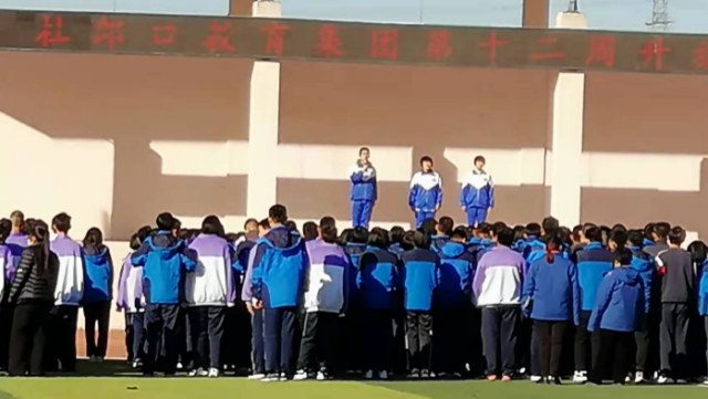 大课间参加了杜郎口学生的周一升旗仪式,观摩了同学国旗下的演讲与国内、国际校园新闻播报活动,这样的经常性的活动润物无声造就了“胸怀祖国、放眼世界”的大格局,还潜移默化地锻炼学生的胆量以及语言表达能力,对我们见习同学也是一次心灵涤荡。