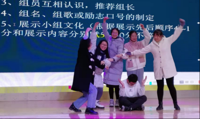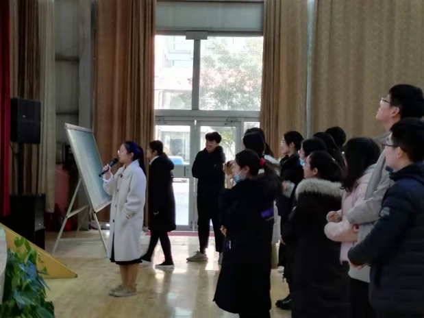 在反思会后,杜郎口中学还为见习生们安排了体验式课堂培训,体验了一把杜郎口中学“课堂应该使学生精神得以升华,人格得以健全,价值得以体现,尊严得以实现”的课堂文化。一开始见习生们不明白活动的意义,有些不知所措,但在杜郎口中学刘桂喜老师的带领下,经过分组,小组pk,合唱等活动后,逐渐表现出见习生们的积极性和表现力,正如老师最后说的;“你们现在的表情和刚开始是截然不同的。”这次活动让我们体会到了小组合作学习的意义所在,在教学中利用宽松,民主,和谐的课堂氛围,使学生能积极地融入,从而完成学习任务。