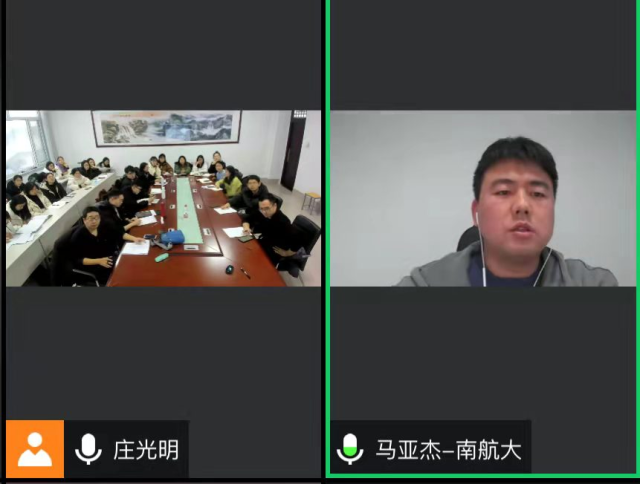 马亚杰教授在本次报告中主要介绍了航天器姿态控制系统执行器故障的自适应辨识与容错控制技术。报告开始,马亚杰教授首先介绍了航天器姿态控制系统的研究背景和研究现状,指出航天器姿态控制系统存在大部分的容错控制设计未考虑失控故障,驱动信号符号反转故障和控制增益矩阵时变故障的设计问题。主要对航天器姿态控制系统模型的构造性问题进行讨论,同时围绕执行器驱动符号,误差转换,自适应补偿;多重故障,自适应直接补偿;执行器时变故障,最小特征值,自适应补偿;执行器失控故障,闭环自适应辨识四个方面提出了执行器故障问题的解决方法。报告最后,马亚杰教授介绍了未来工作的方向将集中于航天器编队/对接位姿运动耦合一体化自适应容错控制设计,基于云边端的智能产线精度控制与容错运维(多目标优化),基于数据、深度学习、神经网络的复杂系统故障辨识与诊断,数控机床设备的健康状态评估,以及复杂系统故障知识图谱构建与推理。会后,庄光明老师、张化生老师与林玉倩同学分别提出了自己的问题,马亚杰教授一一做出了解答。通过本次报告,老师和同学们受益匪浅,本次报告取得圆满成功。