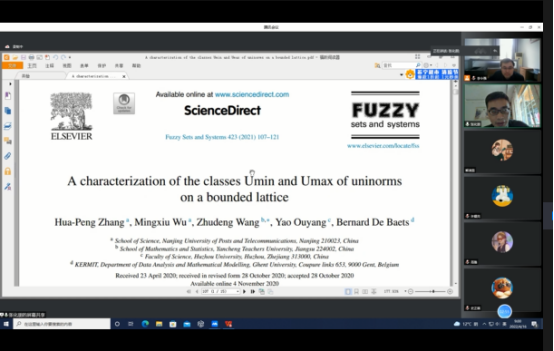 2022年4月16日,应数学科学学院的邀请,南京邮电大学张化朋教授做客聊大,作了题为“有界格上的统一模与零模(Uninorms and nullnorms on bounded lattices)”的线上学术报告。报告由李令强教授主持,数学科学学院不确定理论方向的老师和研究生听取了本次报告。