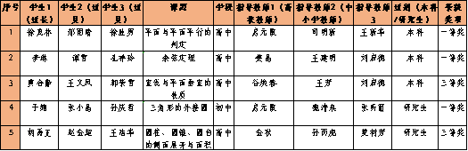 本次活动的主要内容包括“数学微课设计能力测试”和“线上数学教学能力测试”两类。“数学微课设计能力测试”采用小组制,每院最多5组,每组成员不得超过3人。海角 共有5组15名学生参加此测试。“线上数学教学能力测试”采用个人制,每个学院学生人数不超过5人,海角 共5名学生参加。在指导教师们辛勤的指导下,同学们积极备战,最终取得了一等奖3项、二等奖3项和三等奖4项的佳绩,海角 数学科学学院荣获优秀组织单位称号。