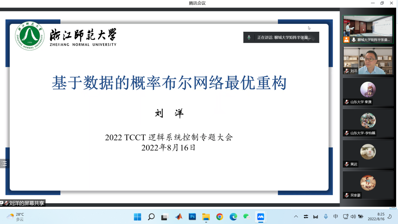 随后,浙江师范大学刘洋、同济大学孟敏、西南财经大学黄迟、大连理工大学李睿、天津工业大学张志鹏、南京邮电大学李博文、河南科技大学闫永义、浙江师范大学钟杰、重庆师范大学李一峰、英国萨里大学张奎泽、海角 王建军、中科院数学与系统科学研究院纪政平共12名专家围绕布尔网络,博弈,有限自动机等逻辑系统理论及其在工程技术、生命科学、经济学等领域的应用研究开展了深入的学术研讨。