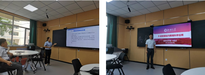数据科学教研室:刘志敏老师,朱成龙老师分别对《机器学习算法》《R语言基础与数据科学应用》进行 “说课程标准”和“说课程内容”。教研室主任和另外一位教师对课程标准、课程内容中出现的不合理问题进行了讨论和修正。