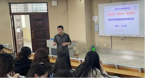 数学科学学院积极响应省教育厅和学校的号召和安排,全力加强科研诚信和学术道德建设,努力营造良好的学术环境,积极引导全院研究生遵守学术规范、坚守学术诚信。2023年3月9日下午,数学科学学院在西校区11号楼A304会议室开展了以“诚信科研,规范学术,融合教学”为主题的科研诚信宣讲活动。本次宣讲由庄光明教授主讲,数学科学学院广大师生参加了本次宣讲会。