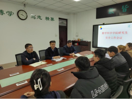 3月17日,数学科学学院于11号教学楼B207召开研究生安全工作会议,学院党委副书记、副院长张进军,副院长夏建伟,副院长赵军圣,研究生班主任张昕丽出席,全体研究生会成员参加。