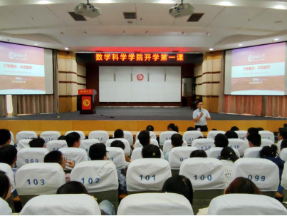 9月21日,数学科学学院2023级新生开学典礼暨开学第一课在西校区图书馆报告厅举行。数学科学学院党委书记刘德芳,院长夏建伟,党委副书记、副院长张进军,副院长赵军圣,副院长陈国梁出席典礼,学院教师代表、辅导员以及2023级全体新生参加典礼。典礼由团委书记岳琳琳主持。