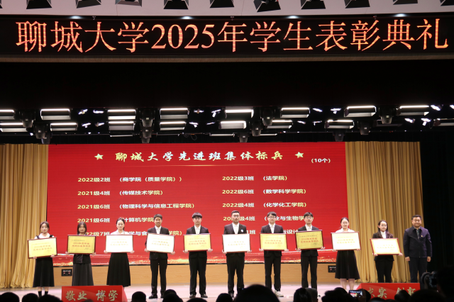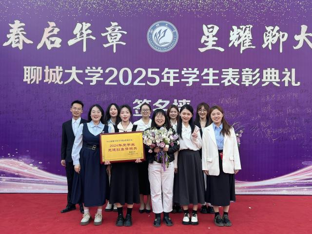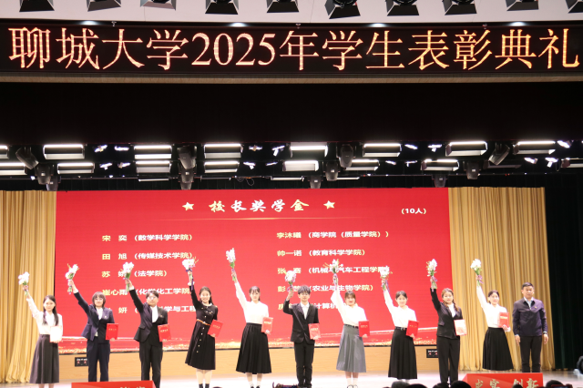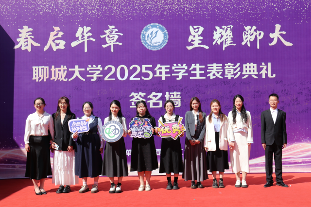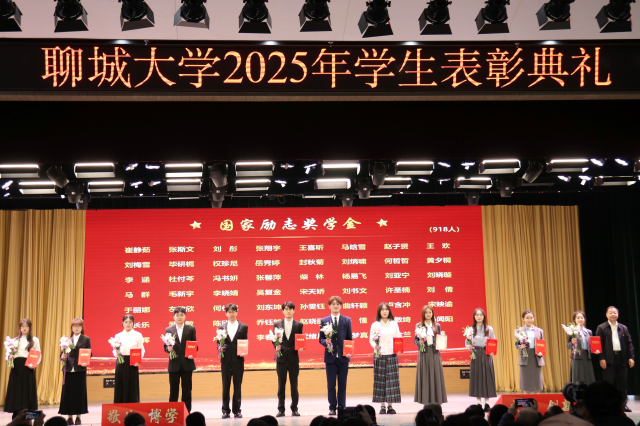 4月2日,“春启华章,星耀聊大”海角 2025年学生表彰典礼于西校区礼堂隆重举行,海角 学子贾成昭、闫城源、吴亚菲、万雪玲、徐畅、马源聪、宋奕、杨婷文、马晗雪上台领奖。