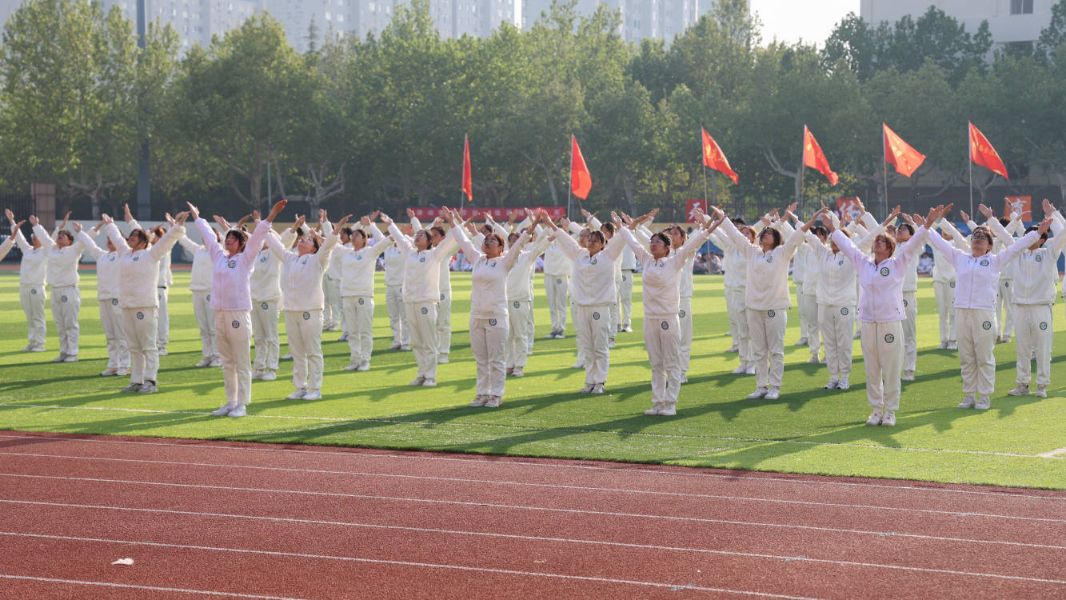 春日的阳光洒在操场上,学院队伍迈着铿锵有力的步伐入场。参赛队员们身着统一院服,口号嘹亮,每一个转身、每一次踢腿都精准到位,展现出扎实的训练成果。从“伸展运动”到“跳跃运动”,从手臂摆动的角度到脚步落地的节奏,队员们精神抖擞、动作规范,将广播体操的力与美完美融合,用整齐的动作传递着对校园生活的热爱。无论是摆臂时的刚劲有力,还是转身时的利落干脆,亦或是跳跃时的轻盈灵动,每一个动作他们都做到精准契合节拍,展现出长期训练的扎实功底。赛场上,一声声口号响亮彻空,队员们以饱满的热情、整齐的动作,共同演绎体育的美妙篇章;以青春的活力、拼搏的斗志,在节奏与力度的精准把握中尽情绽放风采,赢得现场观众阵阵掌声。