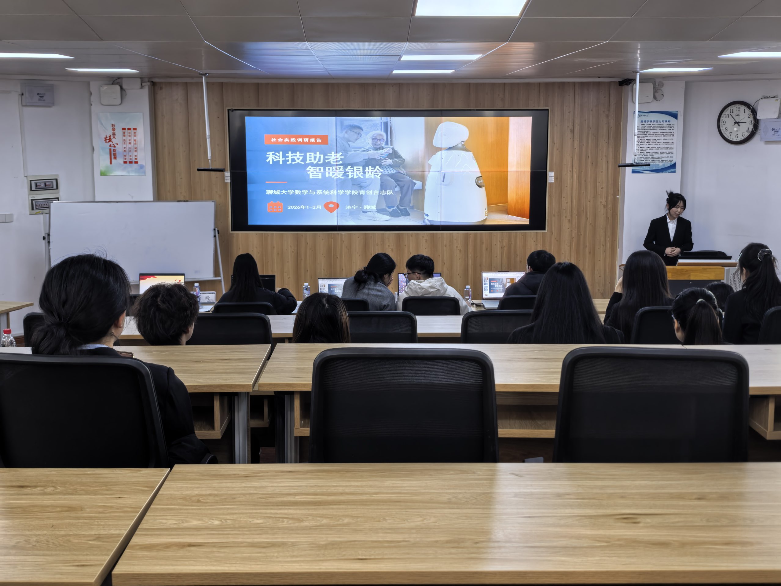 本次答辩会共设置项目展示、评委提问、评委点评三个环节。在项目展示环节中,各团队成员以PPT演示、短视频展播相结合的形式,生动呈现实践项目的选题背景、实施路径、调研数据与社会价值,项目内容覆盖乡村振兴、社区服务、文化传承等多个领域,充分展现了海角 学子躬身实践、服务社会的青春风采。