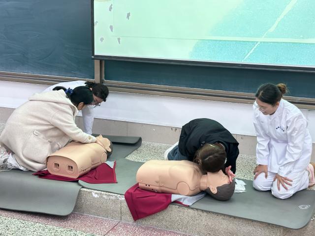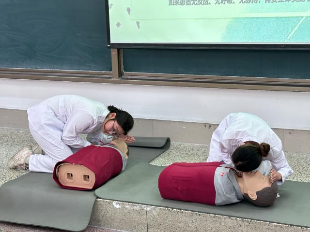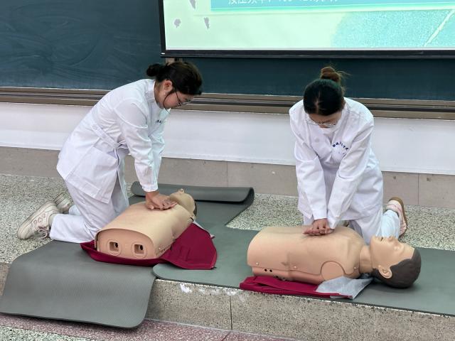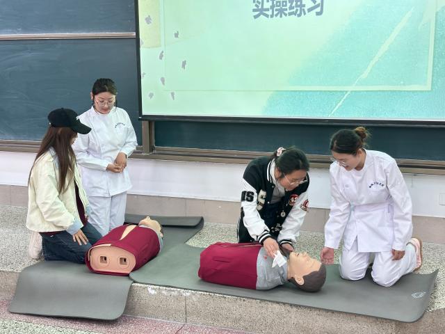 此外,现场设置实操练习环节,同学们积极参与,志愿者逐一纠正操作中的常见错误,确保大家真正掌握急救技能。最后,结合学院学生长期伏案、用眼过度等问题,志愿者详细介绍颈肩腰腿痛等常见疾病的预防知识,提醒同学们注意坐姿规范、定时活动、避免久坐,养成良好的健康习惯。