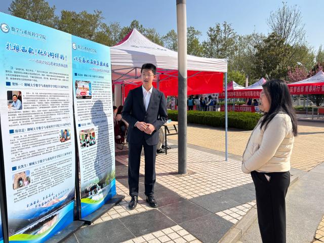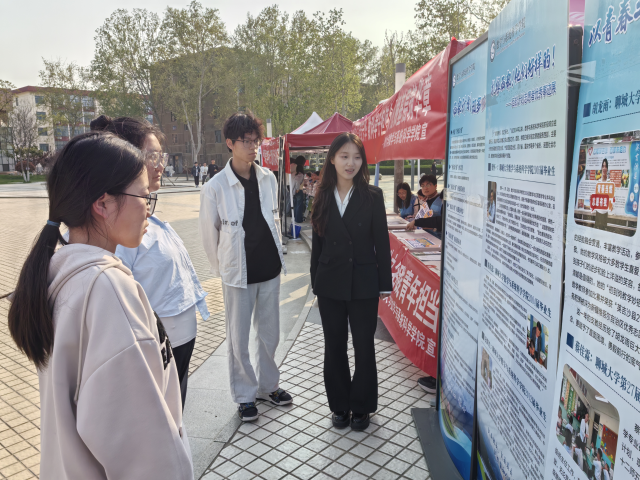 活动现场,学院志愿者统一着装,通过分发招募说明书、西部计划问答彩页等官方资料,为前来咨询的同学系统讲解西部计划的项目概况、服务内容、报名条件、政策保障等核心信息,帮助同学们全面解读政策细节。针对同学们关心的服务岗位、生活保障、考研考公优惠政策等高频问题,志愿者们逐一耐心解答,并现场梳理汇总共性问题,为后续精准答疑做好准备。同时,志愿者们结合学院往届优秀西部计划志愿者的青春事迹,用真实案例鼓励同学们发挥数学专业优势,主动融入国家发展大局,到西部、到基层、到祖国最需要的地方建功立业,坚定毕业生投身西部、服务基层的理想信念。