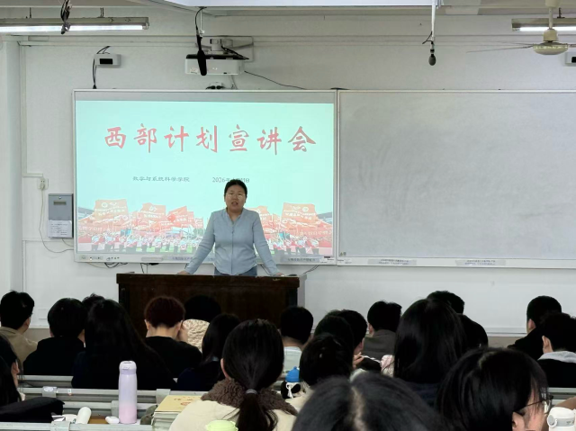 学院始终积极响应国家号召,深耕西部志愿人才培育,鼓励学子服务基层。截至目前,已有88名志愿者奔赴西部,足迹遍布新疆、宁夏、四川、重庆等地,投身教育教学、行政事务等岗位,用实干贡献数科力量。岳琳琳老师结合往届优秀志愿者的基层经历,讲述他们扎根西部、成长成才的故事,让在场同学深刻体会到“用一年不长的时间,做一件终身难忘的事”的志愿初心。