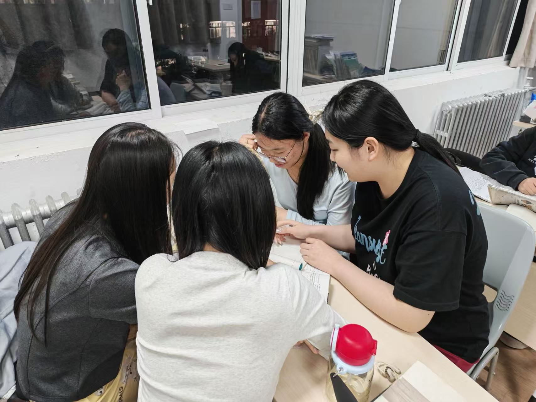 一人遇挫众人帮扶,一人解惑全员共享。这是2022级6班全体学子一直以来坚守的信念,更是他们四载青春逐梦的生动注脚。入学以来,全班同学便锚定考研目标,同心奔赴前路,形成了“比学赶帮超"的学习氛围:面对英语基础薄弱难题,同学们互帮互助结伴背单词、拆解长难句;面对数学专业的复杂难题,同学们自发以宿舍为单位组建学习小组,彼此分享学习笔记资料、梳理考点难点、纾解焦虑。