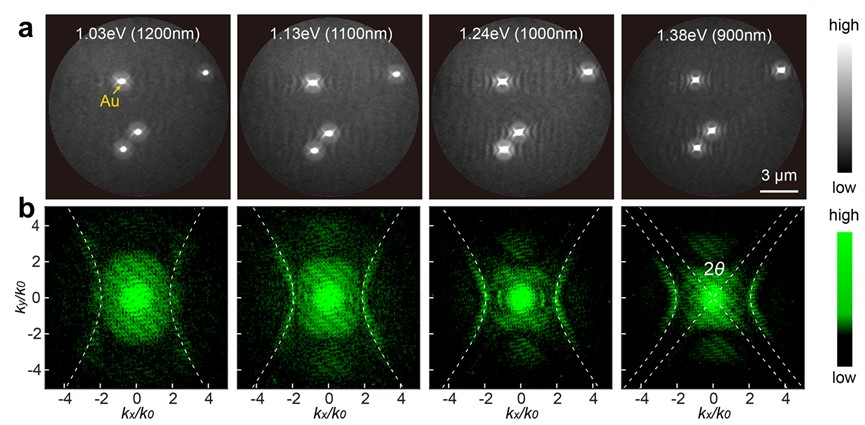 为实现近红外波段PEEM探测,研究团队在以往研究低维材料近场模式的基础上(Nano Lett. 20, 3747-3753 (2020), Adv. Mater. 33, 2100775 (2021), Adv. Photon. Res. 3, 2100354 (2022), Nat. Commun. 14, 4837 (2023)),解决了低维材料亚原子层碱金属沉积的技术难题,大大降低了表面功函数,实现了近红外波段高信噪比成像。