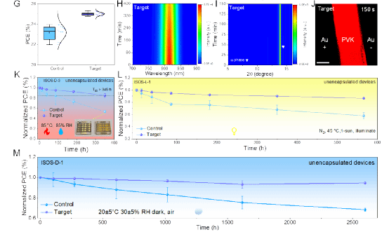 凝聚态物理与材料物理研究所、人工微结构和介观物理全国重点实验室赵清教授课题组提出了一种“湿度开关”策略,通过在钙钛矿中引入湿度开关分子,构建湿度响应型自保护机制,实现了超宽湿度范围内高质量钙钛矿薄膜及器件的可控制备,突破季节性湿度波动对钙钛矿光伏产业化的限制。该成果以“结晶激活的防湿屏障用于钙钛矿太阳能电池的高耐受性制备” (Crystallization-activated moisture barrier for high-tolerance manufacturing of perovskite solar cells) 为题,于2025年10月24日在线发表于《科学·进展》(Science Advances)。