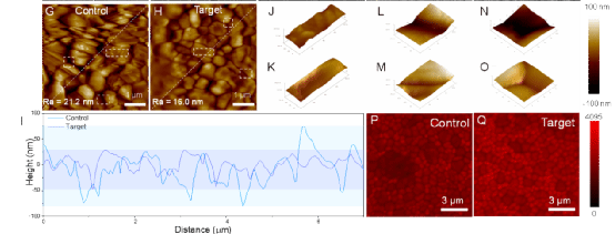 通过分子结构设计与DFT计算,筛选出DTAB作为最优开关分子,其具备长烷基链、强吸电子基团、大尺寸分子等特点,既能促进结晶,又能形成有效疏水屏障。在退火初始阶段,“湿度开关”处于“开启”状态。通过原位光致发光光谱监测(图2),发现DTAB的引入显著改变了钙钛矿的结晶动力学:增加了成核位点,加快了成核速率,并延长了晶体生长时间。原子力显微镜结果表明,添加DTAB的薄膜表面更平整光滑,晶界凹槽和晶面凹陷等缺陷被有效抑制。这表明在开关“开启”阶段,DTAB与水分协同作用,共同引导了高质量钙钛矿薄膜的形成。