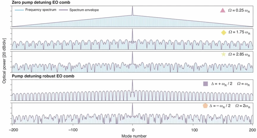 图4:泵浦失谐鲁棒的强耦合腔电光梳。