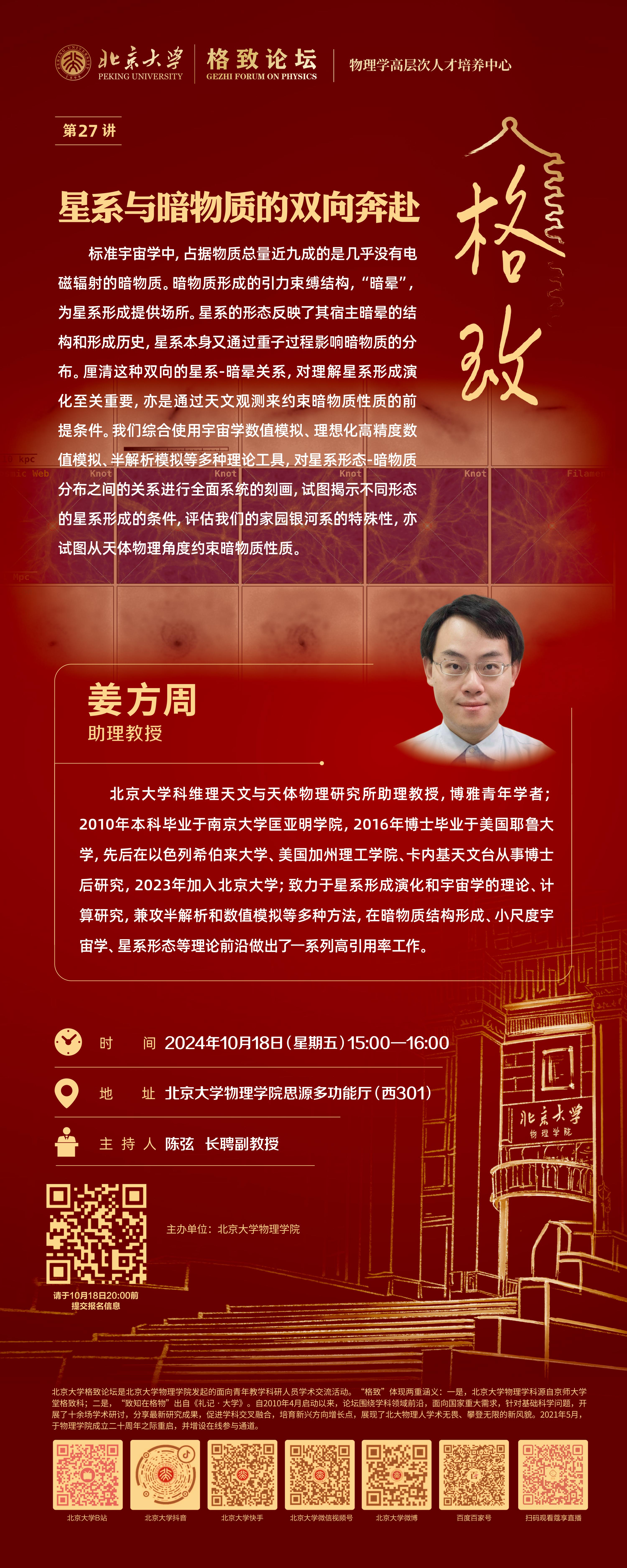 标准宇宙学中,占据物质总量近九成的是几乎没有电磁辐射的暗物质。暗物质形成的引力束缚结构,“暗晕”,为星系形成提供场所。星系的形态反映了其宿主暗晕的结构和形成历史,星系本身又通过重子过程影响暗物质的分布。厘清这种双向的星系-暗晕关系,对理解星系形成演化至关重要,亦是通过天文观测来约束暗物质性质的前提条件。我们综合使用宇宙学数值模拟、理想化高精度数值模拟、半解析模拟等多种理论工具,对星系形态-暗物质分布之间的关系进行全面系统的刻画,试图揭示不同形态的星系形成的条件,评估我们的家园银河系的特殊性,亦试图从天体物理角度约束暗物质性质。