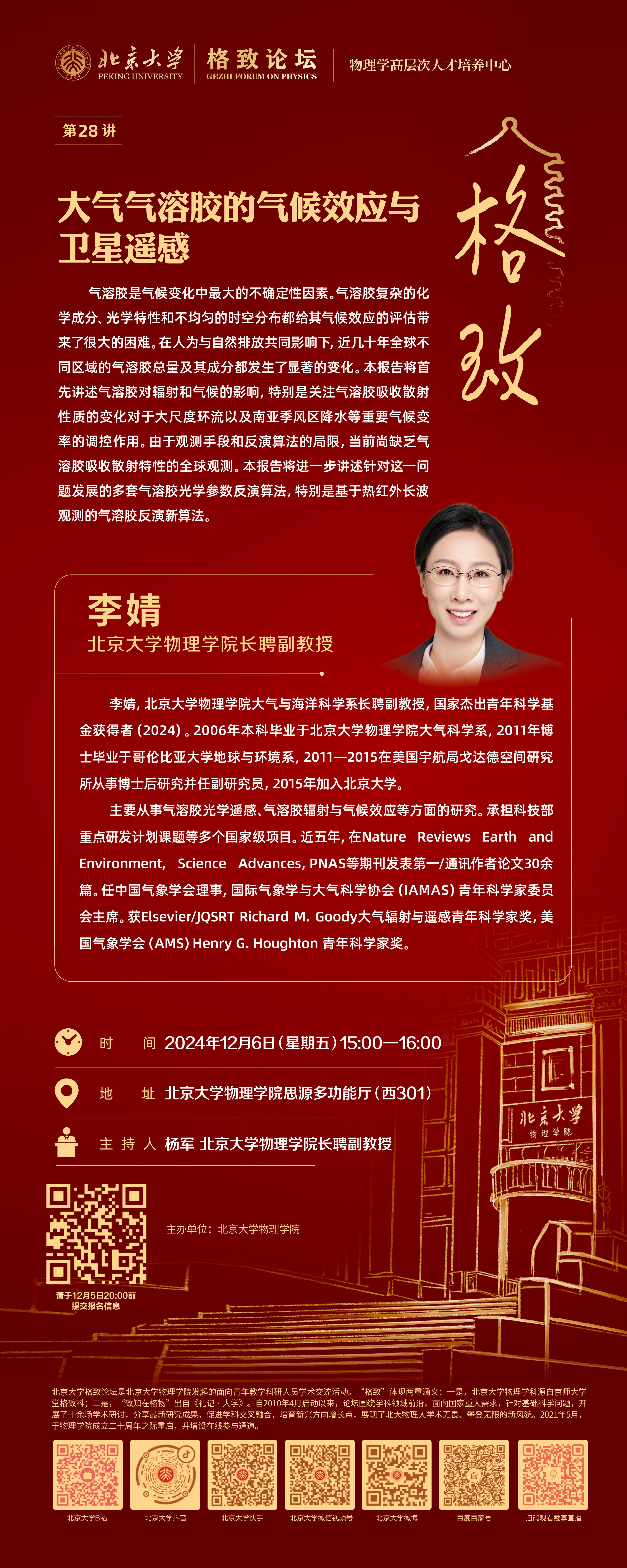 气溶胶是气候变化中最大的不确定性因素。气溶胶复杂的化学成分、光学特性和不均匀的时空分布都给其气候效应的评估带来了很大的困难。在人为与自然排放共同影响下,近几十年全球不同区域的气溶胶总量及其成分都发生了显著的变化。本报告将首先讲述气溶胶对辐射和气候的影响,特别是关注气溶胶吸收散射性质的变化对于大尺度环流以及南亚季风区降水等重要气候变率的调控作用。由于观测手段和反演算法的局限,当前尚缺乏气溶胶吸收散射特性的全球观测。本报告将进一步讲述针对这一问题发展的多套气溶胶光学参数反演算法,特别是基于热红外长波观测的气溶胶反演新算法。