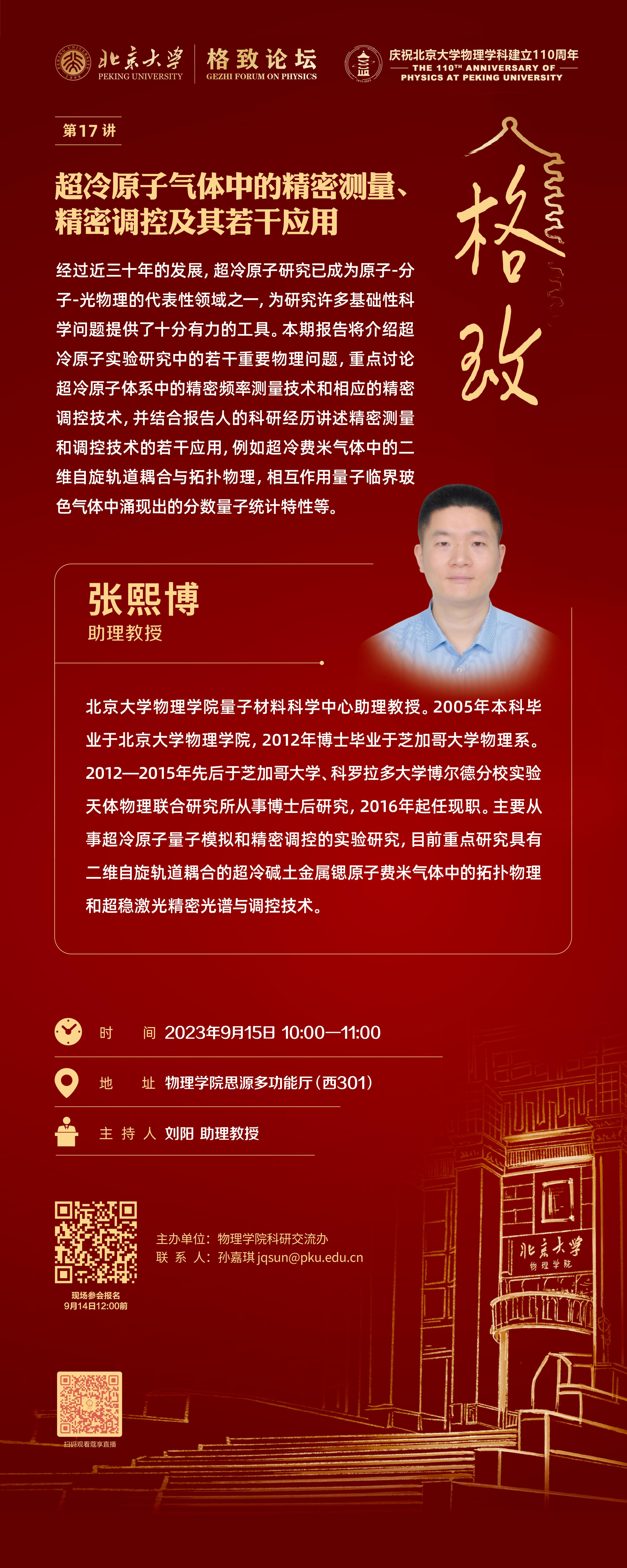 ,2012年博士毕业于芝加哥大学物理系。2012—2015年先后于芝加哥大学、科罗拉多大学博尔德分校实验天体物理联合研究所从事博士后研究,2016年起任现职。主要从事超冷原子量子模拟和精密调控的实验研究,目前重点研究具有二维自旋轨道耦合的超冷碱土金属锶原子费米气体中的拓扑物理和超稳激光精密光谱与调控技术。