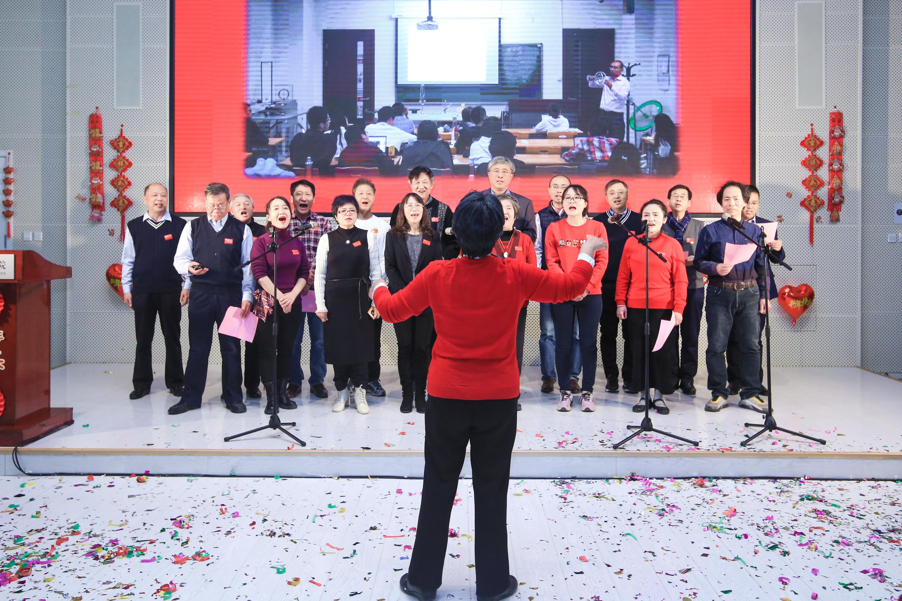 联谊部分由学院学生工作办公室吴平凡和量子材料科学中心博士后刘畅主持。各系、所、中心、学院行政团队和首佳物业团队选送的十四个节目精彩纷呈,展现出教职工在工作之余的别样才情与风貌,赢得阵阵喝彩。节目间隙穿插了精心设计的游戏和抽奖环节,台上台下热烈互动,欢歌笑语此起彼伏。最后,即将迎来本命年的老师被簇拥到台前,亲切的祝福声洋溢全场。
