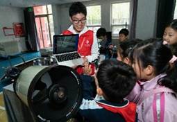 青年天文学会的志愿者结合绚烂的天文摄影图片为同学们讲解天文知识,还与中关村二小星云社的小志愿者共同演示不同口径天文望远镜的使用方法和观测技巧,一起探讨天文知识、分享观测感悟。