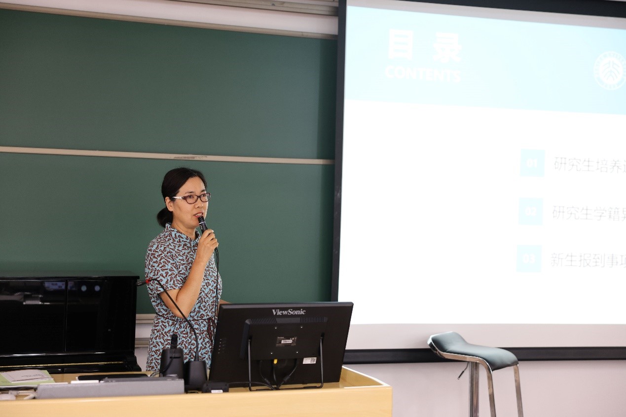 的学习生活打下良好基础。随后,教务办肖黎老师就研究生课程和奖励奖学金等事项展开介绍,王革新老师进行了研究生培养过程说明,刘芳兵老师则主要针对硕士研究生的培养方案进行了介绍。