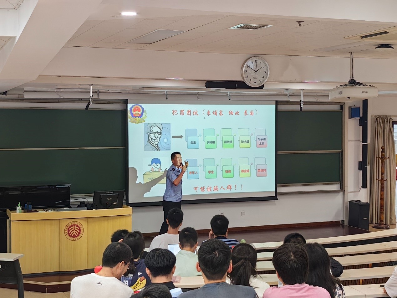 组织2023级研究生新生开展安全教育大会。本次讲座特别邀请燕园派出所曹爱利警官就防范诈骗为新生进行了培训。