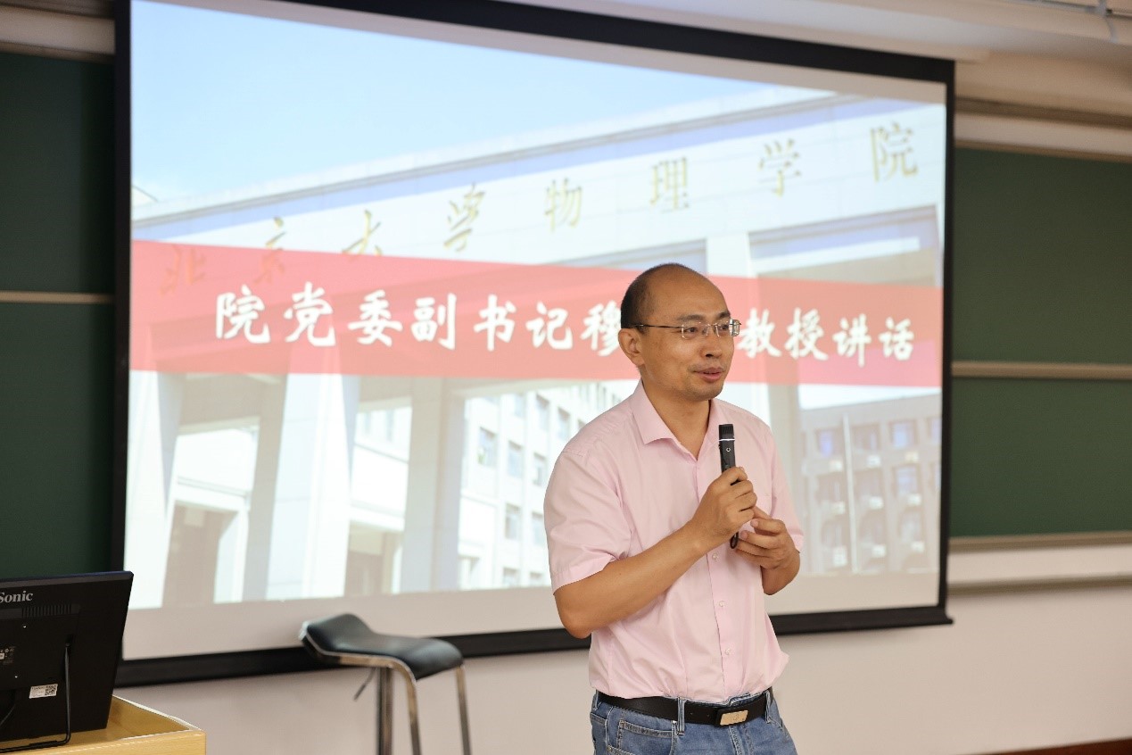 会议最后,穆良柱老师为新生党员带来一场生动而深刻的思政教育党课。他从物理学研究的角度出发,教育党员要建立正确的认知模式,做能够照顾好自己、为家人和社会做贡献的优秀共产党员。