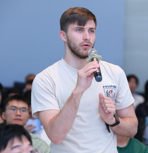 在互动环节,现场师生提问踊跃,威尔金森一一回应,双方就B介子稀有衰变理论预言的可靠性、机器学习方法在LHCb物理分析和探测器性能标定中的应用、下一代对撞机的国际合作模式等展开热烈讨论。