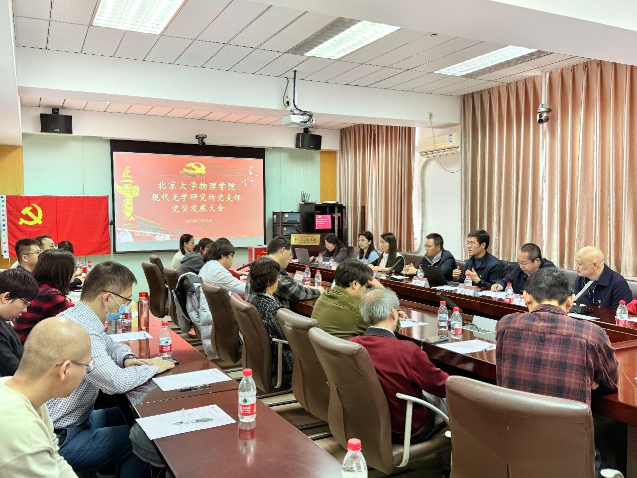 党委书记刘雨龙、院长肖云峰、现代光学研究所党支部党员参加发展会。会议由现代光学所党支部书记朱瑞主持。